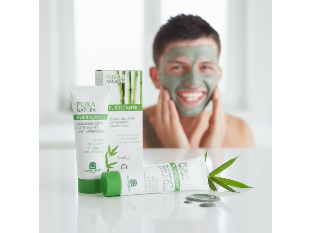 Purifying MASKA NA OBLIČEJ je určena k intenzivní péči o smíšenou a problematickou pleť (lesknoucí se pleť, akné, komedony, rozšířené póry). Rychle a účinně reguluje tvorbu kožního mazu, stahuje rozšířené póry a upravuje strukturu pokožky. Po ošetření pleť dokonale hydratuje, osvěžuje a zjemňuje. Zelený jíl s bambusovým extraktem, cejlonskou skořicí a zinkem intenzivně hloubkově čistí, upravují a zmatní vzhled problémové pokožky.